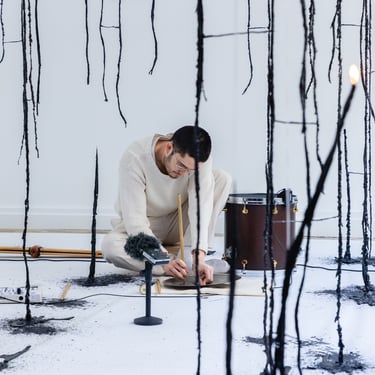 In January 2026 I had the pleasure of being invited to join artist Liang-Jung Chen for a new installation of her project 'ebb is to flow as wax is to wane'. A 6-hour durational performance in which I used sensory percussion to manipulate sounds of burning candles to create a live sound track to the artwork.